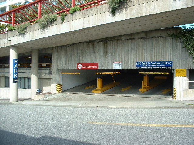 This 590 multi-level parkade caters to both ICBC employees’ monthly parking and ICBC visitor pay parking during regular business hours of 6 am to 4 pm, Monday to Friday.